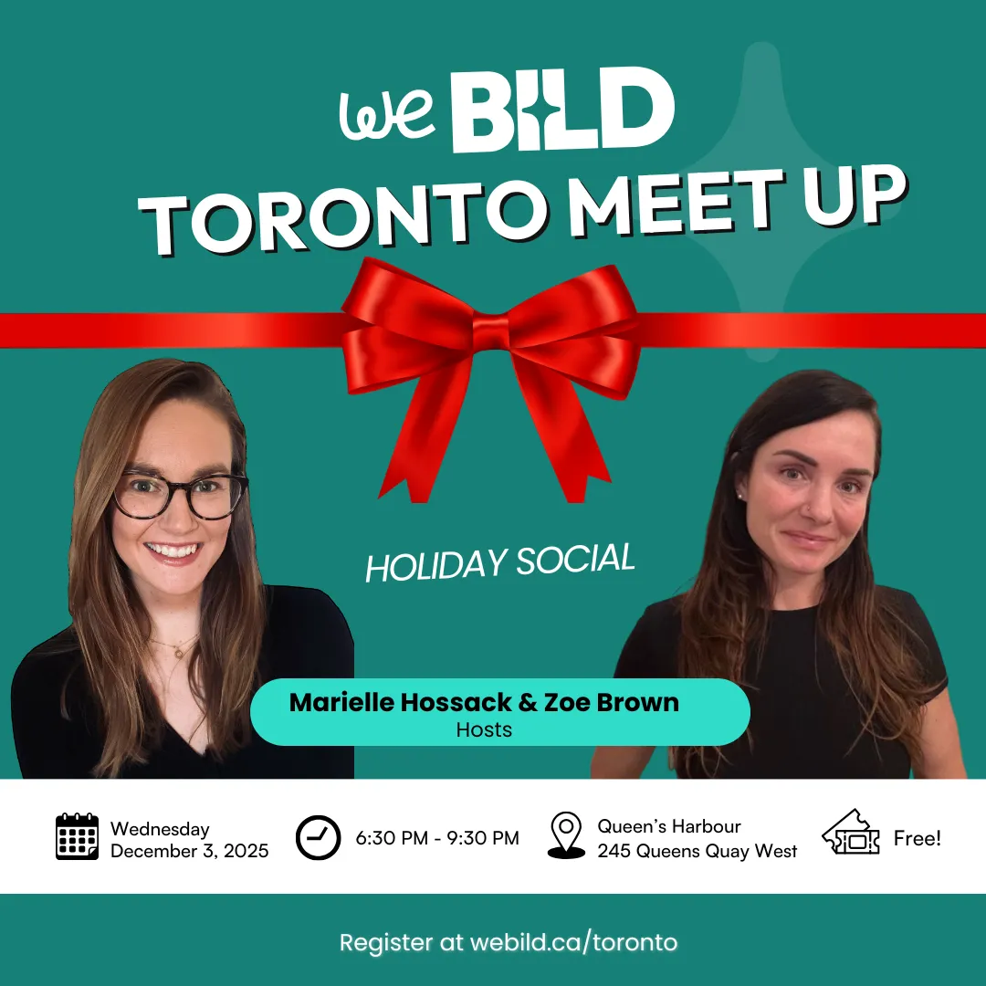 Event Details: Join us for a relaxed holiday social with the WE BILD Toronto community. Connect with inspiring women, enjoy the waterfront atmosphere at Queen’s Harbour, and close out the year with good conversation and festive energy. No agenda, no pressure, just a cozy evening to unwind, meet new people, and celebrate the season together. Reserve your spot today.