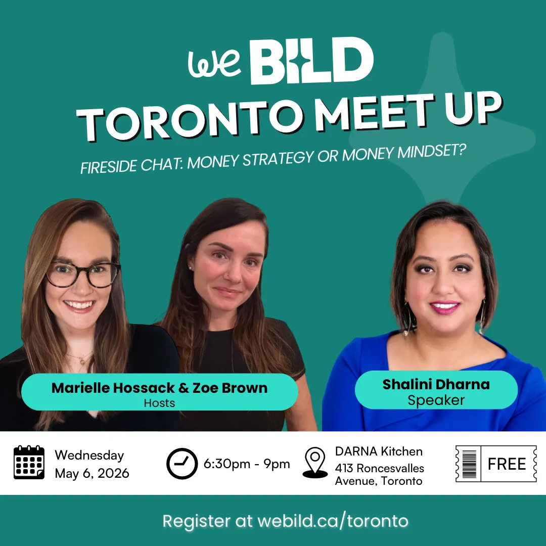 Event Details: Join us for our next WE BILD Toronto event with Shalini Dharna, CPA and Financial Advisor, for a conversation on money mindset and how it shapes your financial decisions. Learn how shifting the way you think about money can help you build confidence, make clearer choices, and create long-term financial growth.